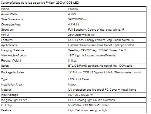La serie Phlizon COB crece ligero, el mejor espectro completo diseñado para adaptarse perfectamente a grandes áreas de plantas de interior, agricultura de horticultura hidropónica e invernadero, especialmente para plantas de interior.